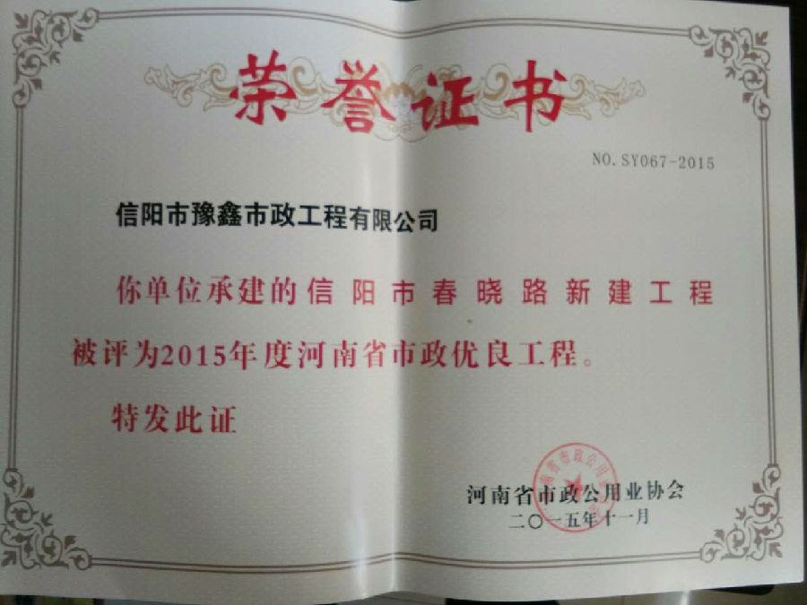 好風(fēng)憑借力,送我上青云。近年來(lái),公司積極參與城市市政基礎(chǔ)設(shè)施建設(shè)施工,積極參與市場(chǎng)競(jìng)爭(zhēng),先后承擔(dān)施工了市政府重點(diǎn)工程南京路道路改造工程、春曉路道路改造工程,東方紅大道道路改造工程、龍江東路新建工程等重點(diǎn)民生工程,其中南京路道路改造工程被省建設(shè)廳評(píng)為“中州杯”, 春曉路和東方紅大道道路改造工程被省建設(shè)廳評(píng)為“省優(yōu)工程”,成為城區(qū)一道道亮麗的風(fēng)景線(xiàn)。參與施工了市典范小區(qū)“臺(tái)北城上城”、“恒大名都”以及師范學(xué)院、職業(yè)技術(shù)學(xué)院、交警支隊(duì)和軍區(qū)道路工程,參與施工了雞公山管理區(qū)、南灣管理區(qū)、明港鎮(zhèn)和羅山縣等部分道路小區(qū)工程施工,累計(jì)大小各類(lèi)施工工程三百余項(xiàng),企業(yè)影響力不斷擴(kuò)大、輻射力不斷增強(qiáng),市場(chǎng)份額不斷提高,企業(yè)信譽(yù)不斷彰顯,為信陽(yáng)城市建設(shè)做出了積極貢獻(xiàn),為企業(yè)的可持續(xù)發(fā)展插上了騰飛的翅膀。